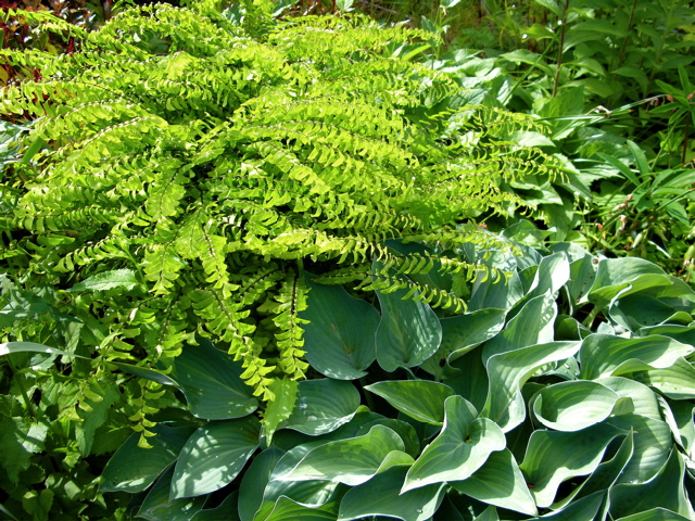 The northern maidenhair fern (Adiantum pedatum) planted with Hosta.