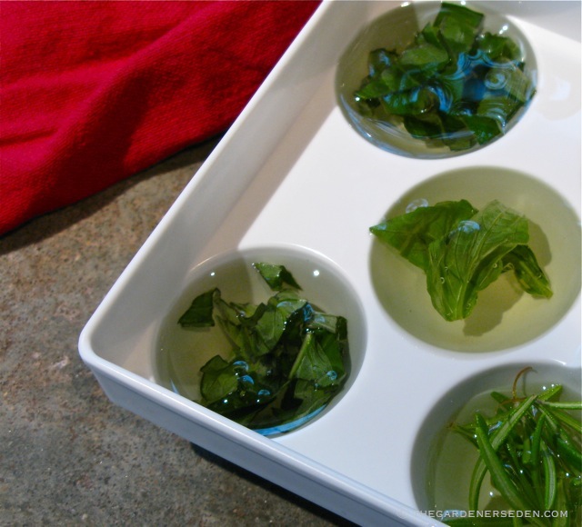 Frozen Herb Cubes with Olive Oil: Photographs Copyright Michaela Medina – thegardenerseden.com