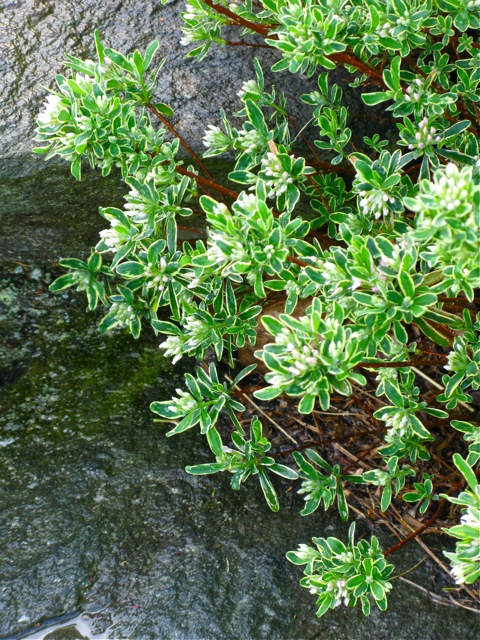 And the last spring-bloomer on today’s season-spanning shrub list -oh yes, you know there will be more coming- has to be Daphne x burkwoodii ‘Carol Mackie’. As a whole, Daphnes have a well-earned reputation for being somewhat temperamental garden plants. However, given the right siting -excellent drainage and protection from crushing snow and burning winter wind, is key- this season-spanning beauty will perform well in zones 4-7. There are other, equally lovely Daphne species and cultivars, however ‘Carol Mackie’ remains at the top of my list of favorites due to her glorious variegated foliage, which turns a honey-gold color in autumn; beautiful against the cool, dark stone landing at the entry to my Secret Garden. And the fragrant flowers in spring? Well, that is really the hook. I have a botanically-obsessed friend who cradles the blossoms in her hands every May, as if they were the rarest commodity on earth – and with good reason! The perfume is sensational; slightly musky with hints of clove and subtly sweet fruit. If only it could be bottled…