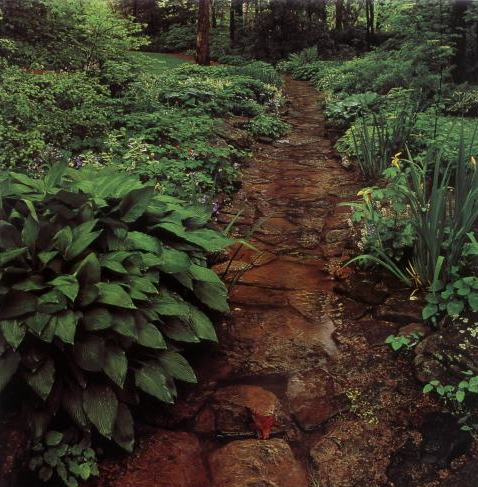 We’ve all heard that the beauty and meaning of life is usually found in the journey, not in the destination. I’m a great believer in this way of looking at things, and I find that the philosophy generally holds true in the landscape as well. Paths and walkways are almost always central features in the gardens I design, and right now I am working on three projects that include stepping stone paths. The way in which a path is designed is key to how a garden will be experienced. Is the purpose of the walkway utilitarian; moving traffic quickly and easily from one point to another? Or will the path be designed to slow visitors down; inviting travelers to linger, pause or sit down and rest for awhile? Are there structural elements to highlight or conceal, views to frame, secrets to reveal? There are many things to consider when designing and installing a walkway or path…