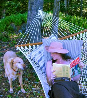 Well, you know how this part of the story goes. Of course, by Friday, the wiggling, slobbering “flea bag” –renamed Oli– was bouncing around the back of my car on the way to his new home. He was, to put it mildly, a terror. Have you seen the film “Marley and Me ? Well, good for you, because I can’t watch more than 20 minutes of it. It’s just too close for comfort. And besides, my dog Oli, makes that dog Marley look like a saint. I kid you not. During his first year in my formerly-peaceful life, Oli did more damage than an F1 tornado. Goodbye car interior (including all back seatbelts and cushions), so-long sexy shoes, see-ya-later kayak seat and farewell furniture. Left alone for more than five minutes, Oli would rip through and devour anything in sight. His ingested-item list even includes a Mikimoto pearl necklace (yes, in its box, pulled from the top of my dresser), and we made more visits to the veterinarian than I care to remember. I was told by dog-loving friends that this behavior would ease up within a year. I was promised this was merely a prolonged puppy phase. I was advised that he had separation anxiety and that training would help. Wrong. Wrong. Wrong. Oli continued his reign of terror straight through the following summer, when I began working on my new gardens. Unimpressed with my horticultural pursuits, Oli uprooted perennials as fast as I planted them and devoured several young shrubs. He even stripped the branches from a rare Japanese maple, defoliating and destroying it within minutes, while I unloaded groceries in the kitchen. Yes, I still love him, but I would be lying if I told you that I never had a dark thought about my dog.