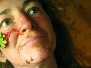 I’m not really sure of how it all started. Maybe it was our mom’s idea, or maybe it was something we came up with. Maybe it was an accident, and maybe it was on purpose. Anyway, one hot afternoon, certainly following some drama, a handful of smashed berries ended up on someone’s face. And then another handful… And another… And another… Until our faces were completely covered in mushy strawberry goo. Of course this reduced us to gut-splitting giggles, and we thought it was all pretty hysterical -and outrageous – but somehow we decided it was also very, very glam. This ‘spa treatment’ came to be known as the ‘strawberry shortcake facial’, and it was all the rage that summer in the field. Yes, I know we weren’t the first -and definitely won’t be the last- kids to smear strawberry mush on our faces… But it sure is a sweet summer memory…