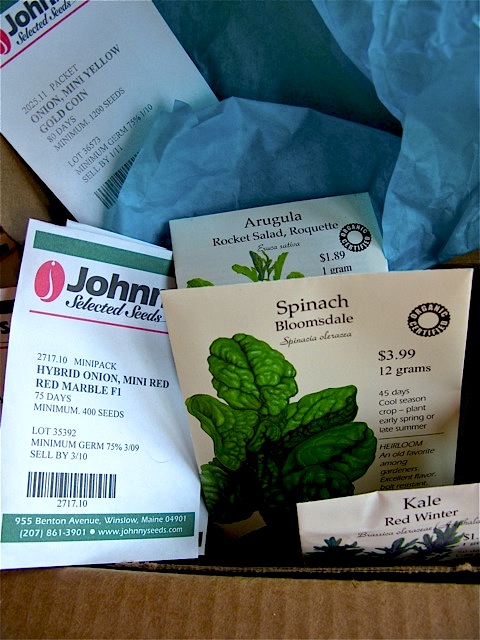 It’s always exciting when the first boxes of vegetable, herb and flower seed begin to arrive in the mail. I know, I know. I am a bit like a little kid – but I have to check the mail every day to see if there is something waiting for me in that big metal box at the foot of the hill. The Johnny’s package from Maine always arrives first, then Botanical Interests from Colorado, and then Renee’s Garden Seeds way out in California, (hello California, I miss you!). Â The first thing I do is open the box and just pour over all the pretty envelopes. I have to get that part out of my system. Then I begin grouping the seeds in order of sowing. Since I will start the onions, leeks and herbs in a week or so, those will be bundled together in the front. The cabbage, broccoli and other cold-hardy crops will be started in waves. Some will go into the hoop houses and some will be started indoors this year beneath grow lights. Oh, so much potential. I can’t wait.