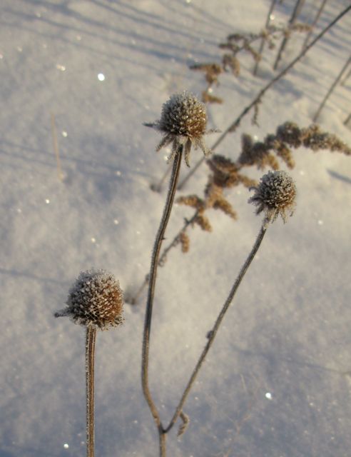 Miscanthus sinensis and Viburnum in the morning light – January 2010