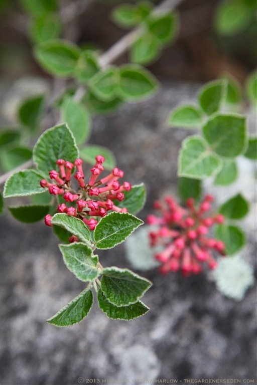 With its silver-green, pubescent foliage, cerise buds and intensely spicy fragrance, the Judd Viburnum (Viburnum x  judii) is truly one of my favorite species.