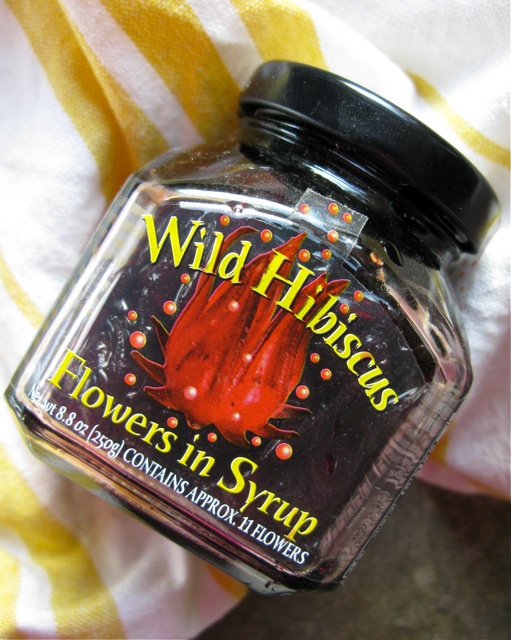 *Wild Hibiscus Flowers ($10 for an 8.8 0z jar at Amazon.com), are available online, or through specialty retailers. Wild Hibiscus company is based in Australia and the hibiscus are hand picked on sustainable farms. Each 8.8 oz jar contains approximately 11 hibiscus flowers, and they may be used in a wide variety of cocktails, non-alcholic drinks and desserts. You can also float the flowers in glasses of sparkling water, ginger ale or whatever fizzy beverage strikes your fancy, for a non-alcoholic version of the Wild Hibiscus Royale.