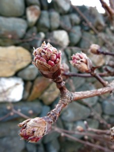 As I walk around I note my garden’s structure and examine trees and shrubs. Â I may finish up some last-minute tree pruning on varieties not at risk for bleeding sap, (avoid early spring pruning of maple or birch, for example). Â I will look for rodent damage, such as gnawed bark and girdled branches and prune those jagged edges clean.