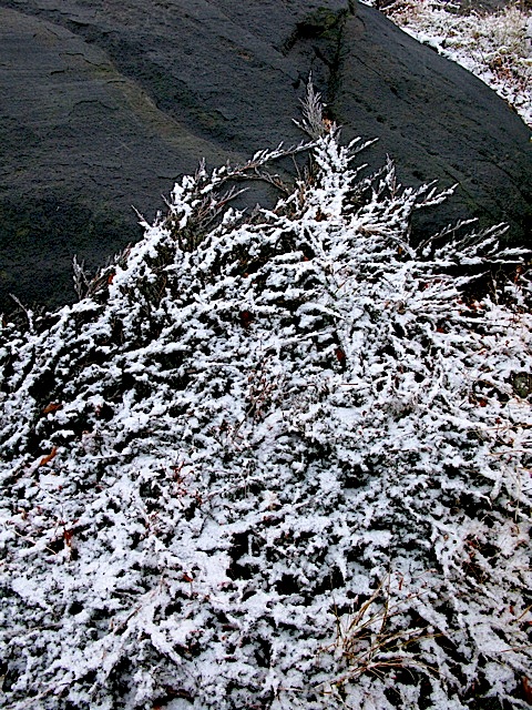 Juniperus horizontalis ‘Wiltonii’,(‘Blue Rug’), could pass for fine white lace…