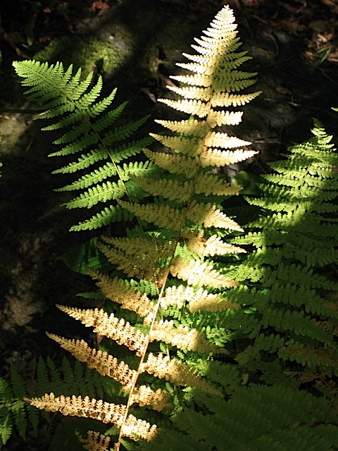 Hay-scented ferns, (Dennstaedtia puctilobula), just beginning to turn gold along the forest path…